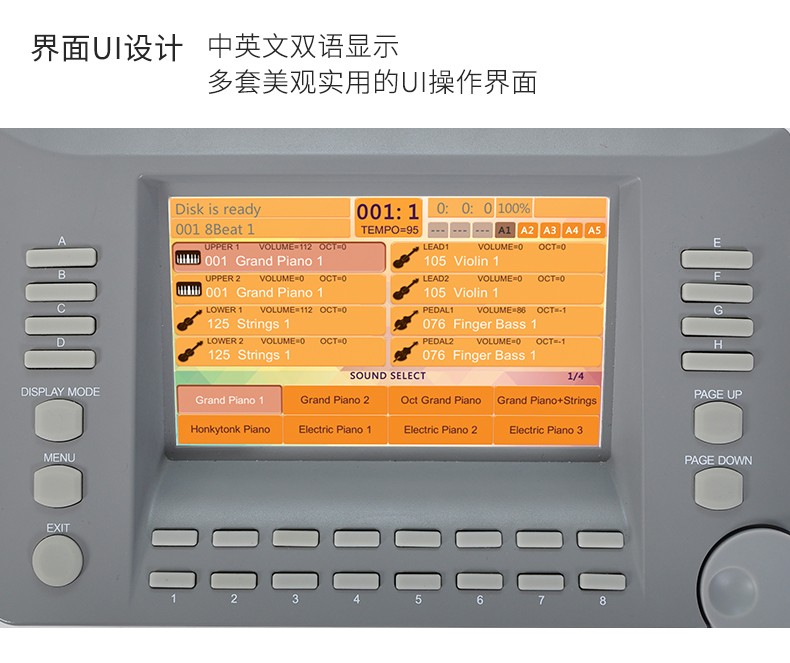 節奏控制:啟動/停止、前奏、尾奏、間奏1/2、主奏A/B、同步啟動、速度