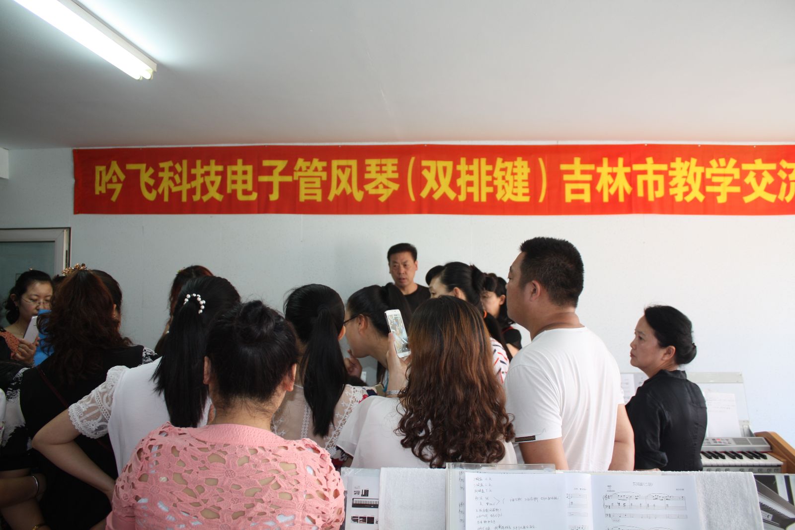 為了提高公司電子管風琴(雙排鍵)產品在吉林市地區的市場認知度,盡快將公司電子管風琴(雙排鍵)產品在一、二級市場建立好形象,在吉林市電子鍵盤學會的大力支持下,2015年6月15和17日來自長春、吉林、樺甸、白山等地區的20多位電子鍵盤老師在吉林市戰紅老師電子琴學校,參加了“吟飛科技電子管風琴(雙排鍵)吉林市教學交流活動。