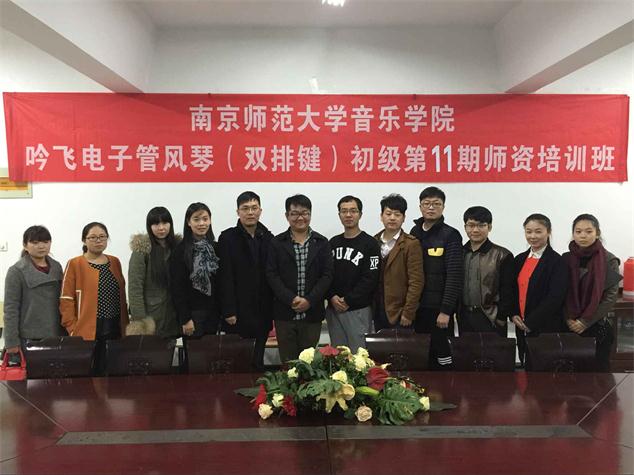 2015年11月16日至25日,南京師范大學音樂學院舉辦了吟飛電子管風琴(雙排鍵)初級第十一、十二期兩期師資培訓班,來自河南、江蘇、山東、浙江、廣東等地的二十多位老師參加了這兩次培訓。培訓由吟飛藝術中心華那晨主講,培訓內容包括“吟飛”電子管風琴(雙排鍵)(RS-700)功能的操作及使用復習、吟飛電子管風琴(雙排鍵)使用、教學等內容進行提高培訓等。