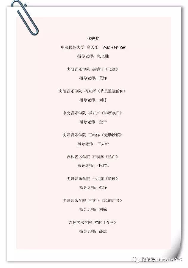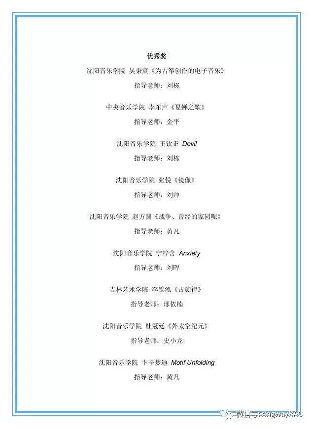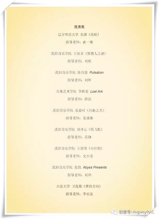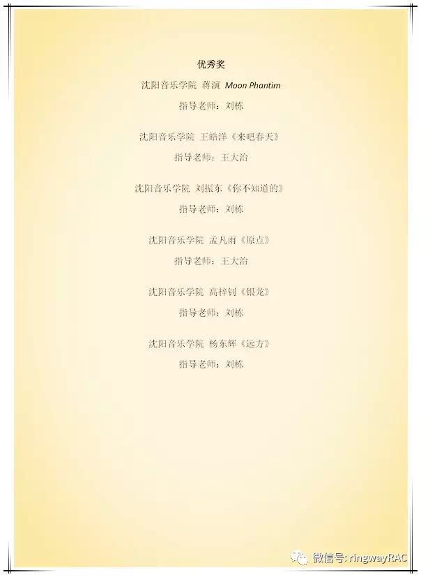 經過評委會嚴謹細致的選拔,脫穎而出了各組最后的一、二、三等獎和優秀獎。我們為獲獎者的精心創作,對音樂的嚴謹態度而喝彩;同樣為這些作品付出智慧和耐心指導的教師點贊!