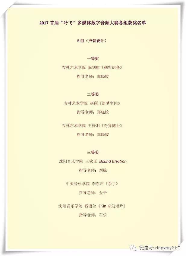 此次大賽是數字多媒體技術在錄音,配樂以及電子音樂創作領域的集中展示。沈陽音樂學院作曲系吟飛電子音樂教學中心成立后首次參與到大賽中來,希望能為電子音樂的發展出一份力。