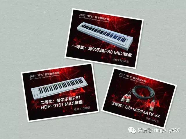 為合作此次比賽,吟飛科技(江蘇)有限公司為獲獎選手精心提供了MIDI鍵盤和連接線作為獎品。獎品雖談不上價值不菲,但是希望這些實用的“工具”能為大家以后的學習 和創作添磚加瓦。