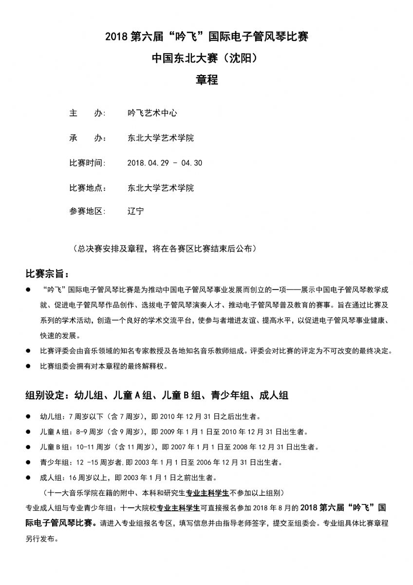 2018第六屆“吟飛”國際電子管風琴比賽中國東北大賽(沈陽)賽區參賽指南和詳細賽程稍后也將發布,請隨時關注“吟飛科技(江蘇)有限公司官網just9229.cn”和“吟飛藝術中心”微信公眾號。