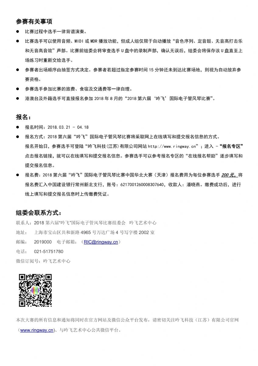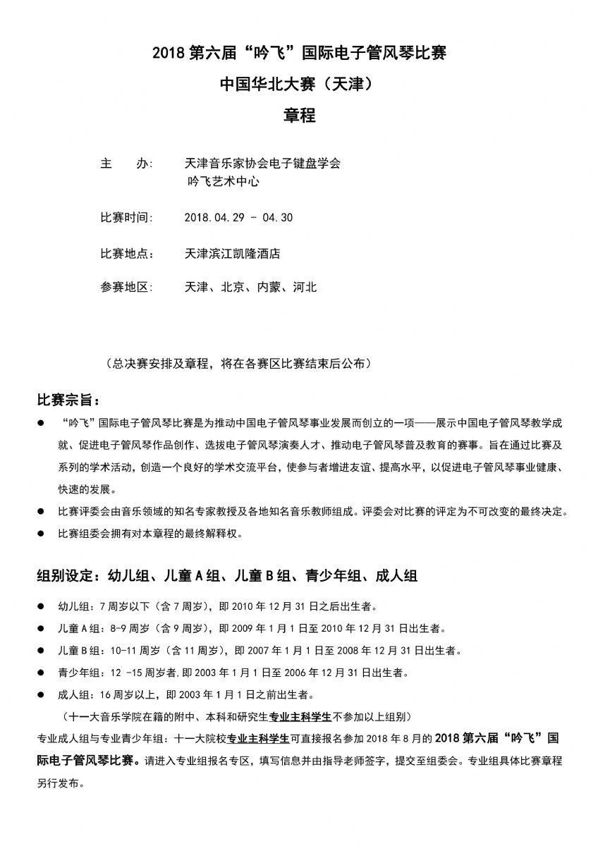 2018第六屆“吟飛”國際電子管風琴比賽中國華北大賽(天津)賽區參賽指南和詳細賽程稍后也將發布,請隨時關注“吟飛科技(江蘇)有限公司官網just9229.cn”和“吟飛藝術中心”微信公眾號。