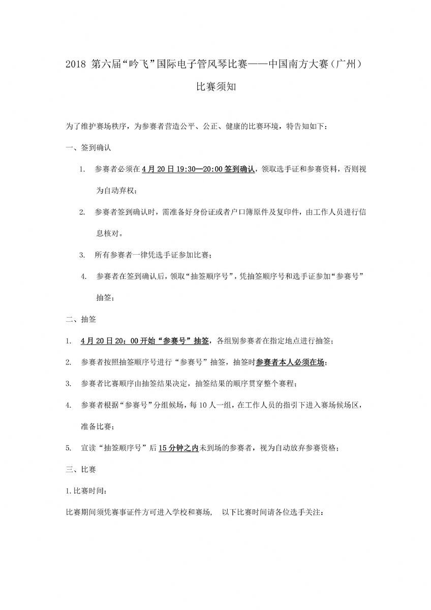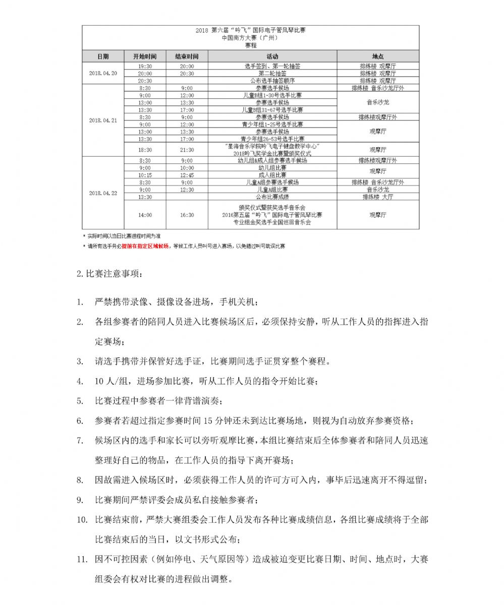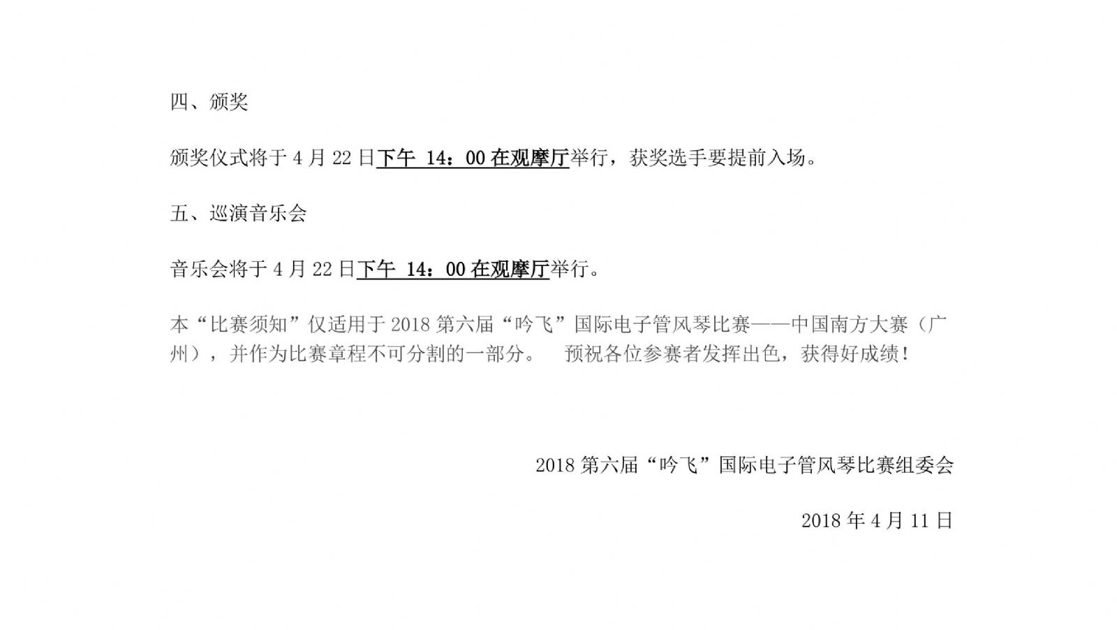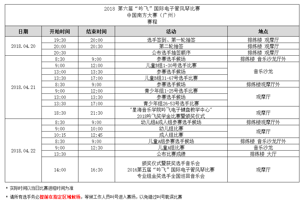 中國南方大賽(廣州)|2018第六屆“吟飛”國際電子管風琴比賽賽程